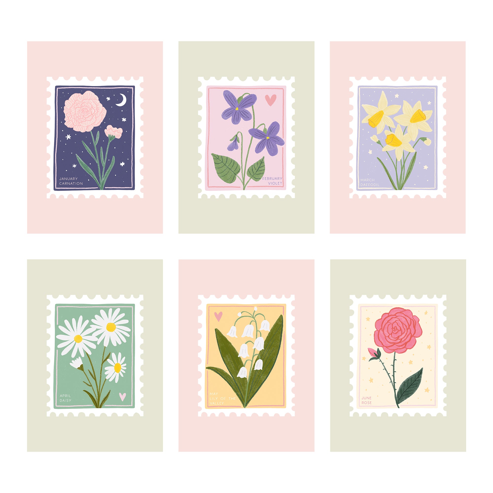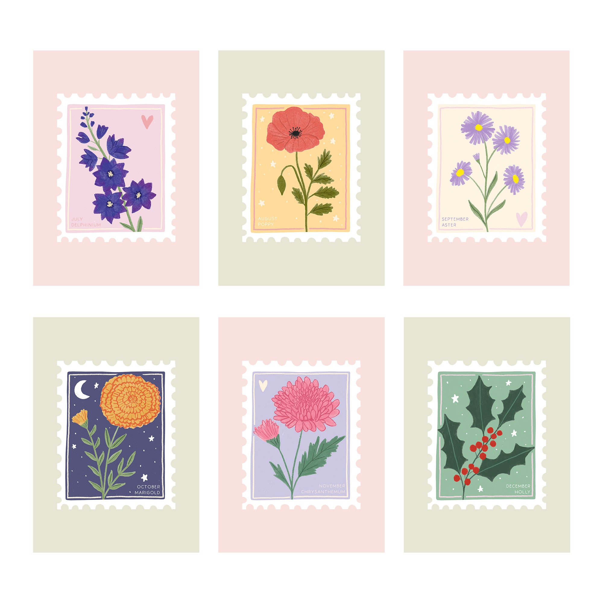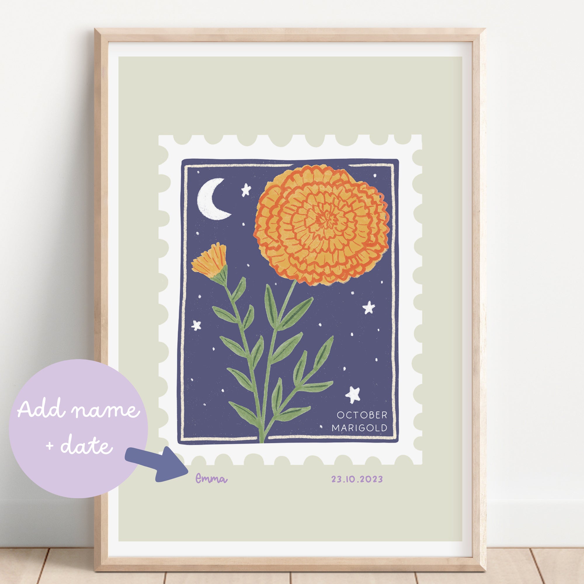 Celebrate the special people in your life with our personalised birth flower print! This customisable art print features an illustrated birth flower in a stamp design, making it the perfect gift for birthdays, new baby's, and christenings!