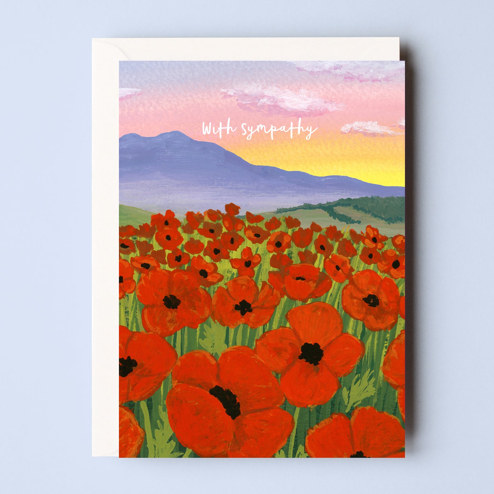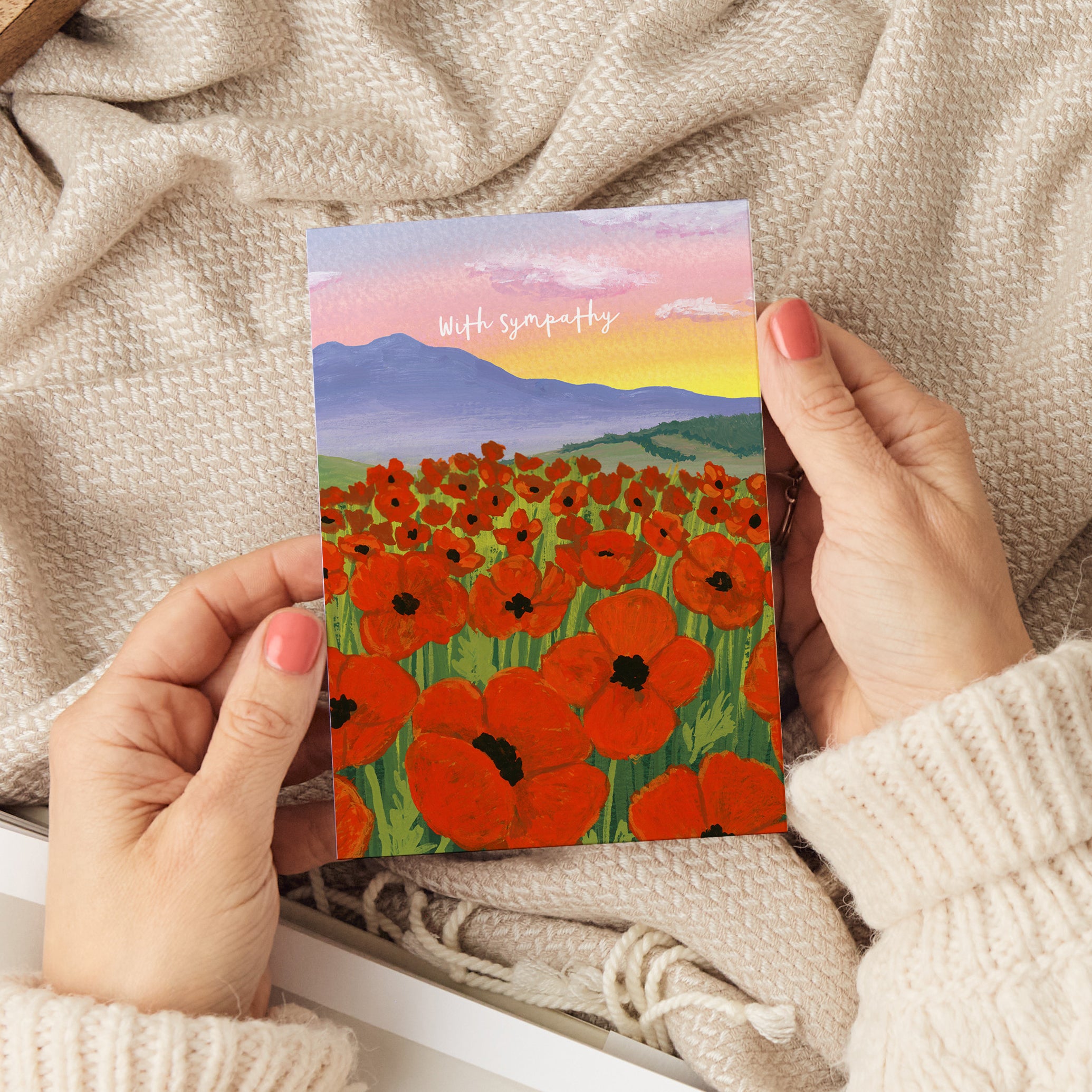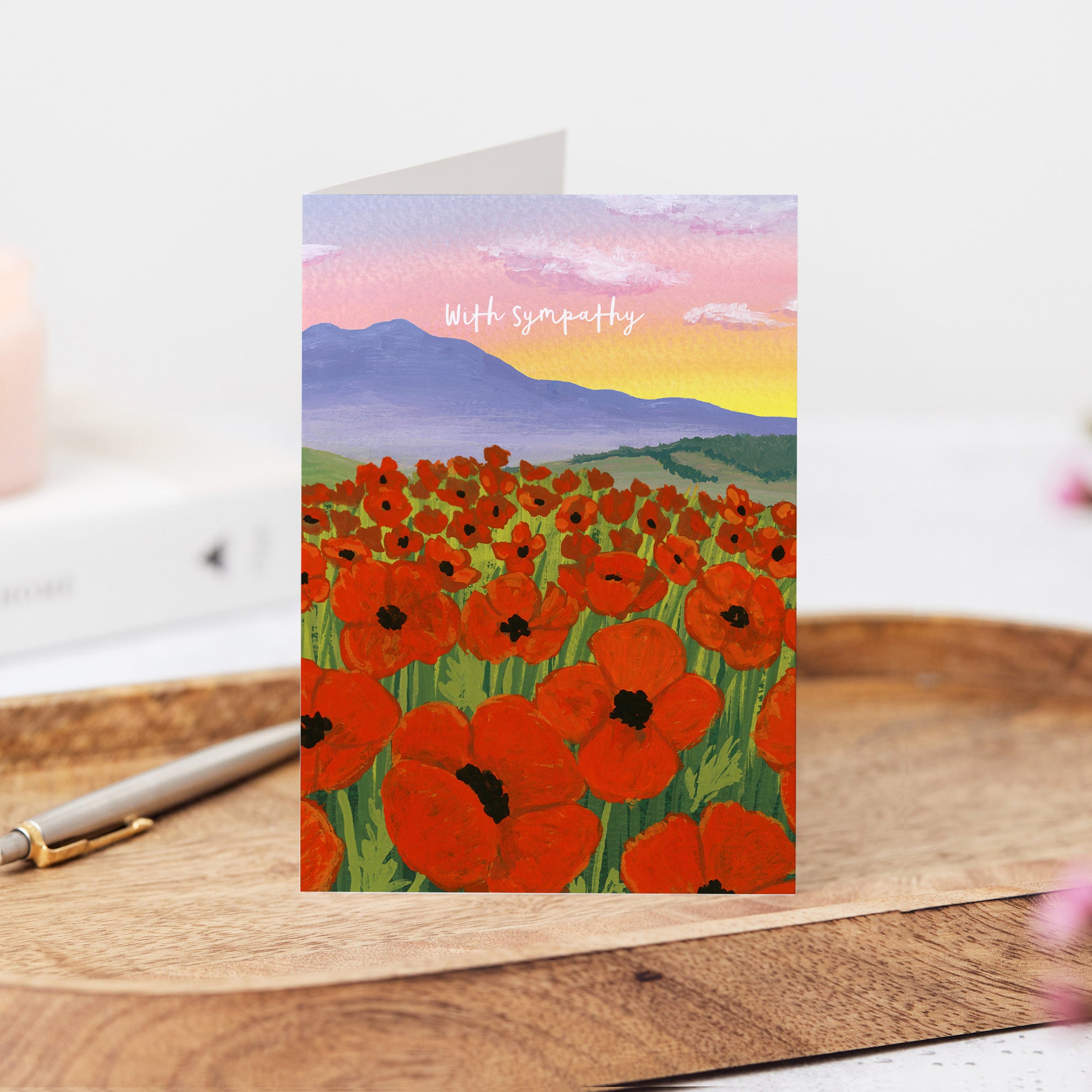 Send someone you love a card to let them know you're thinking of them at a time of loss with this card showing a field of poppies.